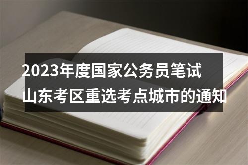 鉴于当前疫情防控形势,为最大限度减少人员流动,方便考生参考,经研究决定,中央机关及其直属机构2023年度考试录用公务员笔试山东考区在全省16个设区市均设置笔试地点。现就重选考点城市有关事项通知如下: