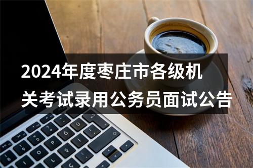 根据《2024年度枣庄市各级机关考试录用公务员公告》,现将我市2024年度各级机关考试录用公务员面试有关事项公告如下: