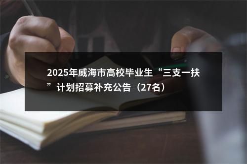 声明:专注 2025年威海市高校毕业生“三支一扶”计划招募补充公告(27名) 相关岗位分析;专业指导面试技巧;保障就业成功概率。