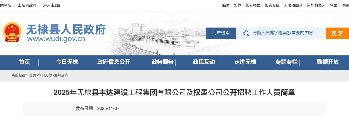 原标题:2025年无棣县丰达建设工程集团有限公司及权属公司公开招聘工作人员简章