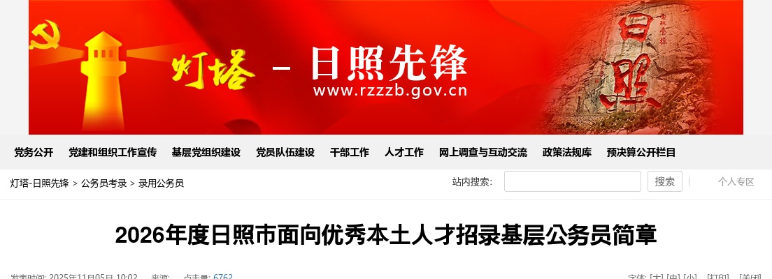 原标题:2026年度日照市面向优秀本土人才招录基层公务员简章